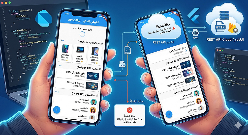 ربط API وعرض البيانات داخل تطبيق Flutter