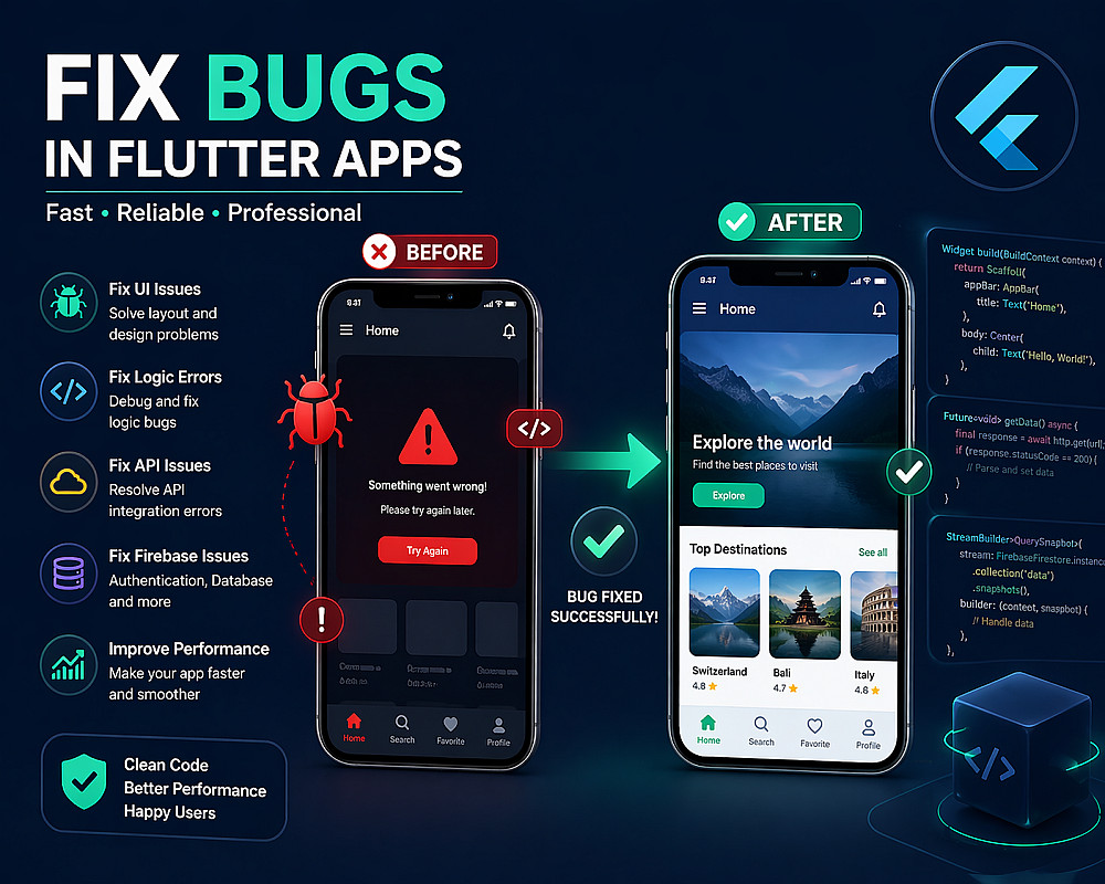 إصلاح الأخطاء في تطبيقات Flutter بسرعة واحترافية