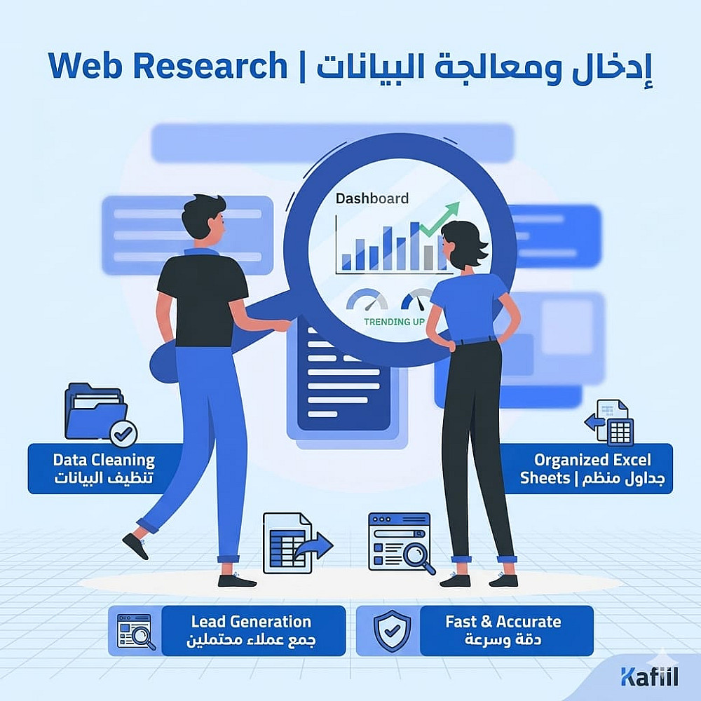 هل تحتاج إلى قائمة بيانات دقيقة ومحدثة لدعم نشاطك التجاري؟ أوفر عليك عناء البحث والتجميع اليدوي من خلال تنفيذ عملية Web Research دقيقة وشاملة لجمع المعلومات التي تحتاجها من مختلف المصادر الموثوقة على الإنترنت.