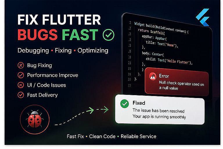 لو عندك تطبيق Flutter فيه مشاكل أو Bug أو عايز تعدل فيه، أقدر أساعدك بشكل سريع واحترافي.
