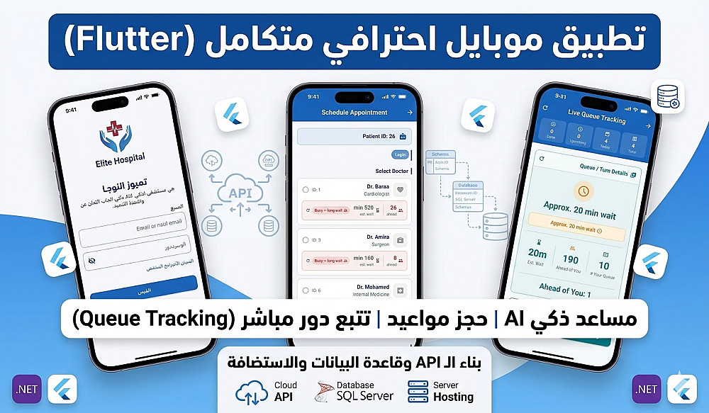 (ملاحظة: الصور المرفقة هي نموذج لتطبيق "Elite Hospital" قمت بتنفيذه بالكامل، يوضح مدى تعقيد وجودة الأنظمة التي يمكنني برمجتها لك)