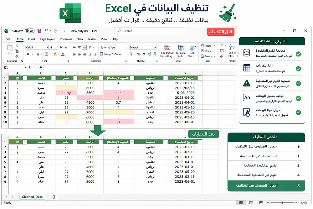 تنظيف البيانات وتحسين جودتها (Data Cleaning & Preprocessing)