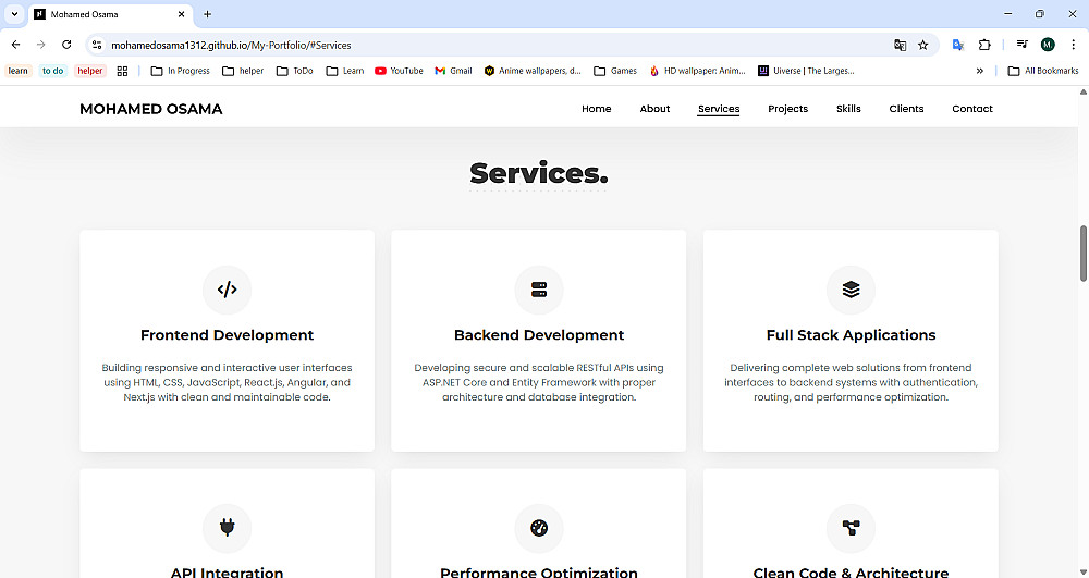 أنا أقدم لك خدمة تصميم وتطوير صفحات ويب حديثة وسريعة ومتجاوبة باستخدام أحدث تقنيات تطوير الويب.