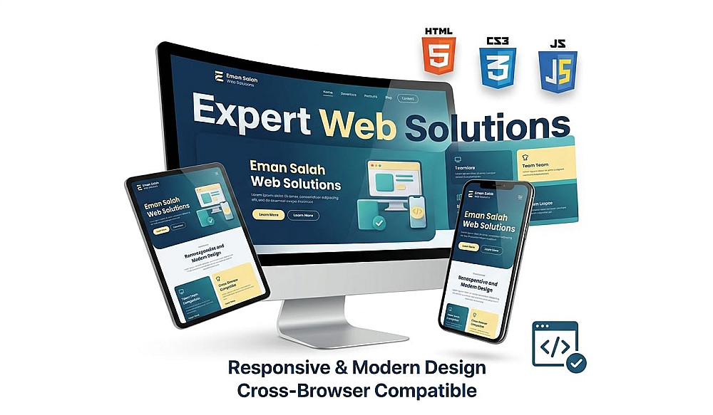 تصميم موقع ويب تفاعلي احترافي باستخدام HTML و CSS و JavaScript