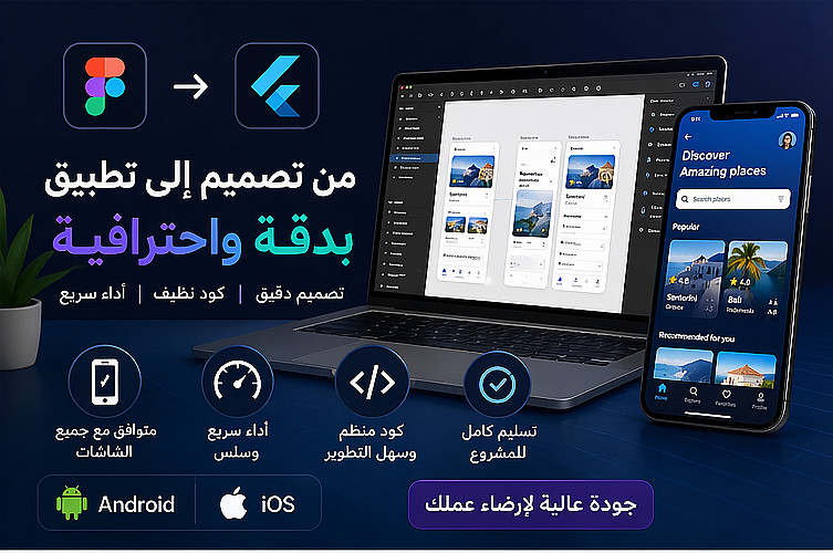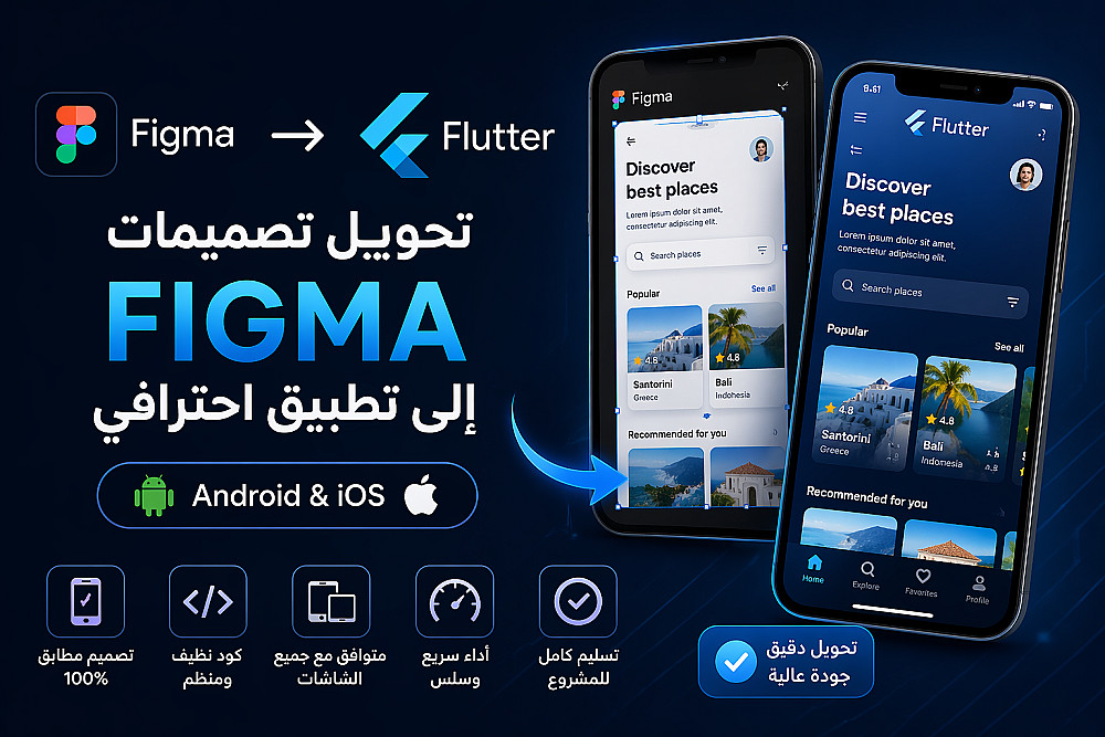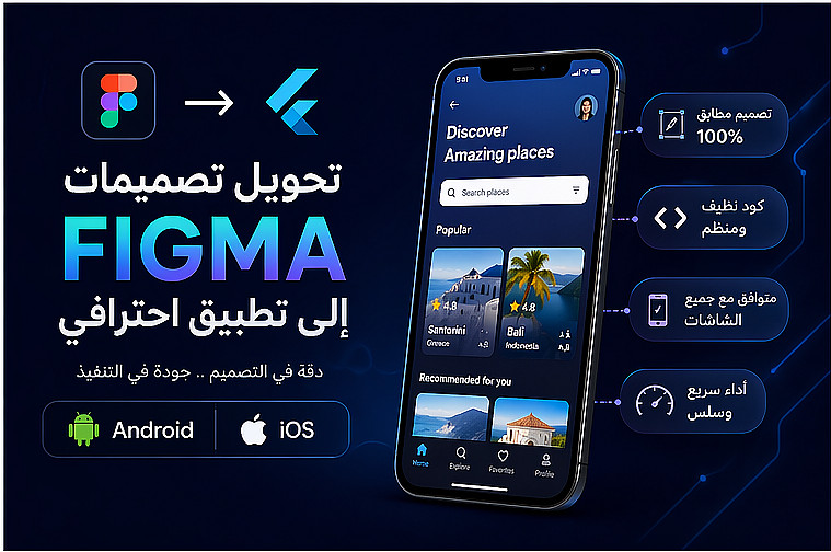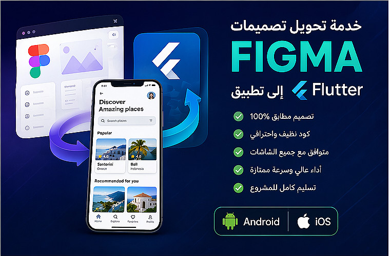 أنا أقدم لك خدمة تحويل تصميماتك من Figma إلى تطبيق باستخدام Flutter بدقة واحترافية عالية.
