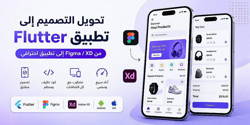 تحويل التصميم إلى تطبيق Flutter (Figma / XD to Flutter)