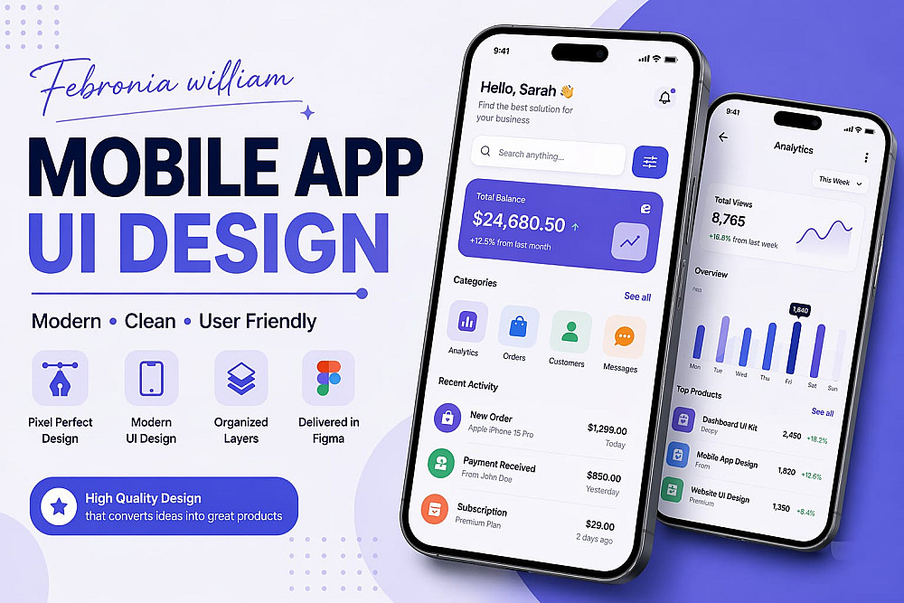 تصميم واجهه تطبيق موبايل UI\UX احترافي باستخدام figma