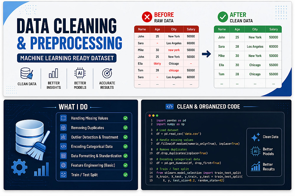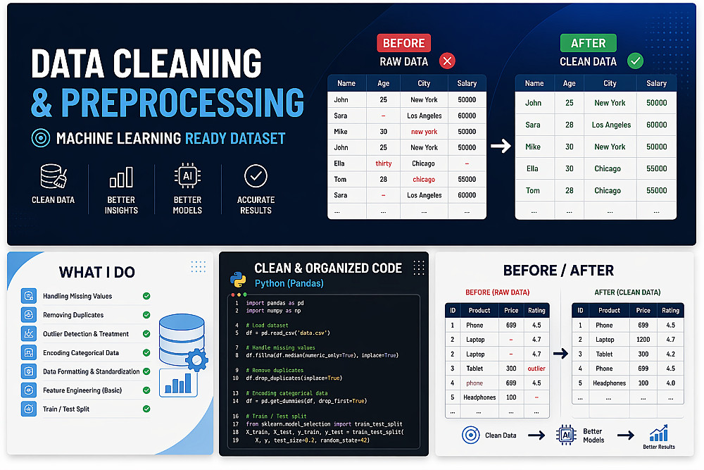 تجهيز وتنظيف البيانات لمشاريع تعلم الآلة وتحليل البيانات.
