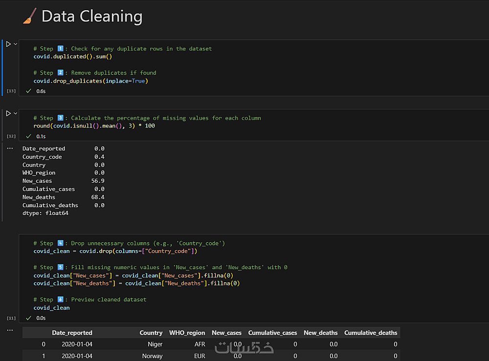 تنفيذ تنظيف ومعالجة البيانات بدقة عالية باستخدام Python وPandas مع ضمان نتائج موثوقة.