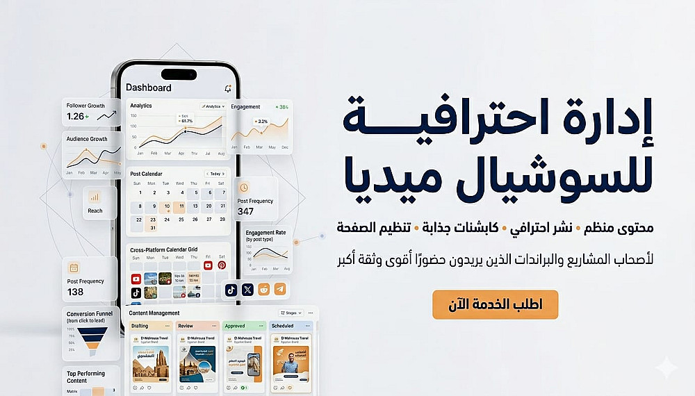 سأقدم لك إدارة سوشيال ميديا احترافية بمحتوى منظم يعكس قوة مشروعك