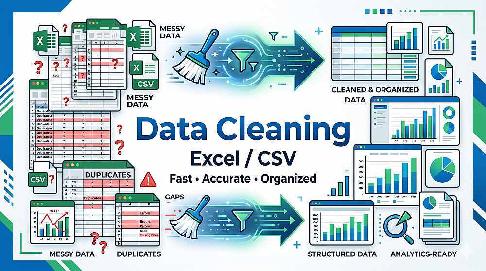 هل لديك ملف Excel أو CSV يحتوي على بيانات غير مرتبة أو مكررة أو ناقصة؟