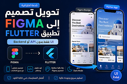 تحويل تصميم Figma إلى تطبيق موبايل كامل باستخدام Flutter (UI + Logic + تجربة مستخدم) بدون Backend