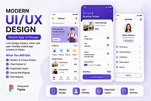سأصمم واجهات تطبيق موبايل احترافية وحديثة باستخدام Figma