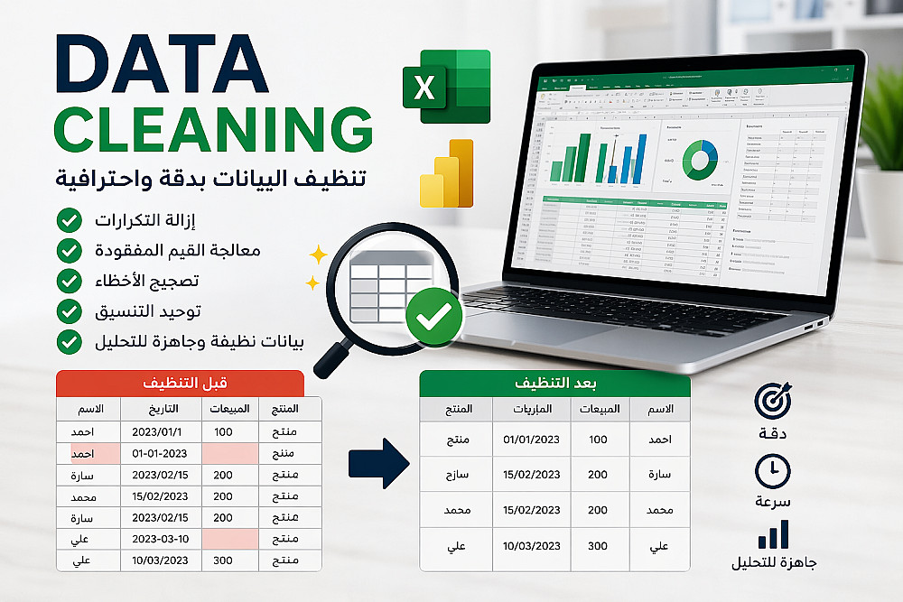 أنا أساعدك في تحويل البيانات الفوضوية إلى بيانات دقيقة ومنظمة وجاهزة للاستخدام