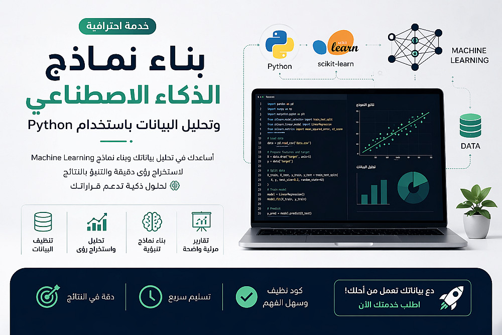 بقدم خدمات تحليل البيانات وبناء نماذج تعلم آلي بسيطة تساعدك في فهم بياناتك واستخراج نتائج مفيدة.