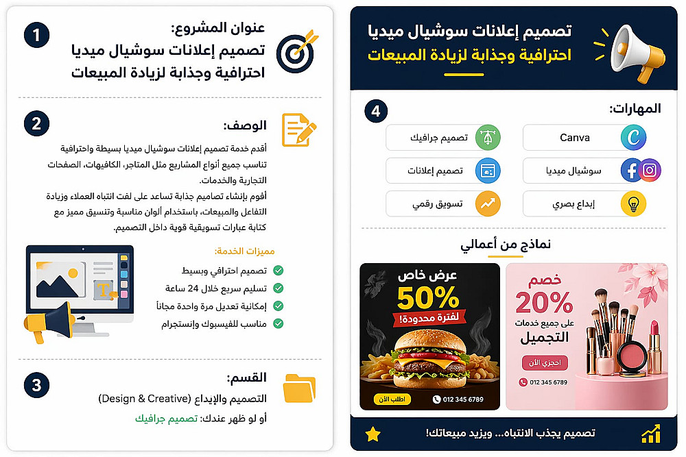 تصميم إعلانات سوشيال ميديا احترافية وجذابة لزيادة المبيعات