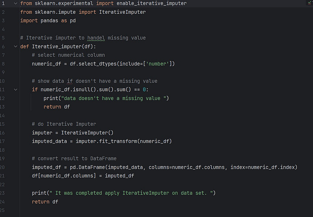 -معالجة البيانات المفقودة : استخدام تقنيات استعاضة متقدمة مثل MICE أو KNN بدلاً من الحذف العشوائي، للحفاظ على حجم ومعلومات الداتا.