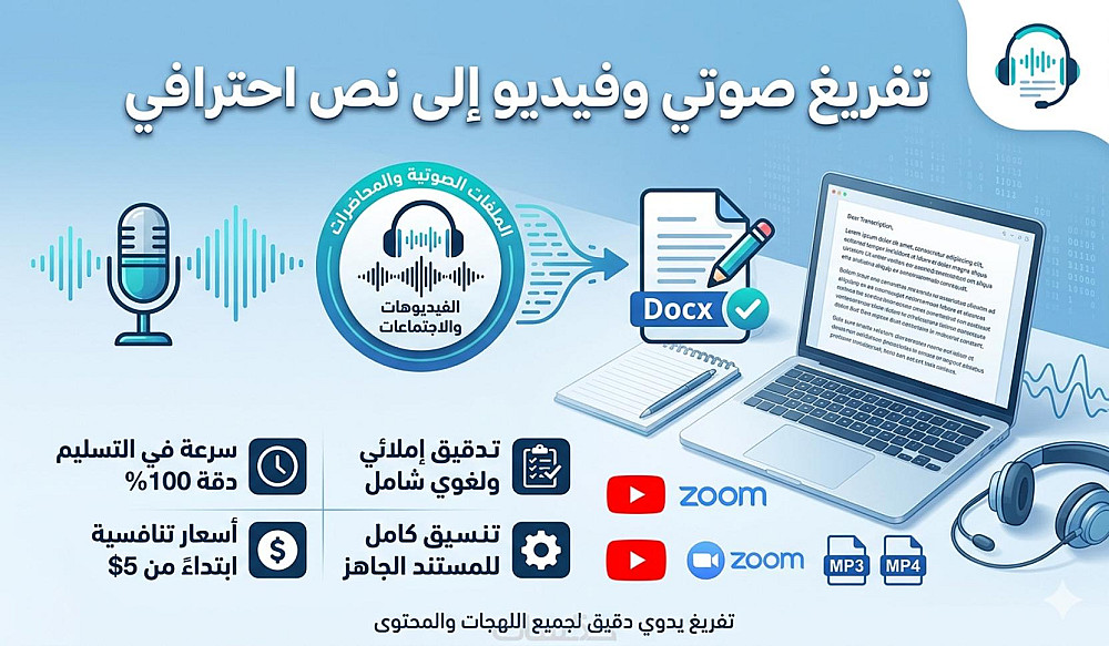 🎧 خدمة التفريغ الصوتي بدقة واحترافية