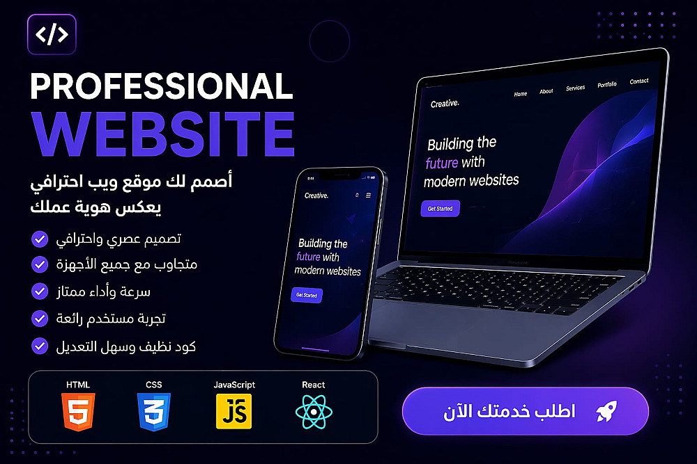 سأصمم وأطور واجهة موقع إلكتروني احترافية ومتجاوبة باستخدام HTML CSS JavaScript React