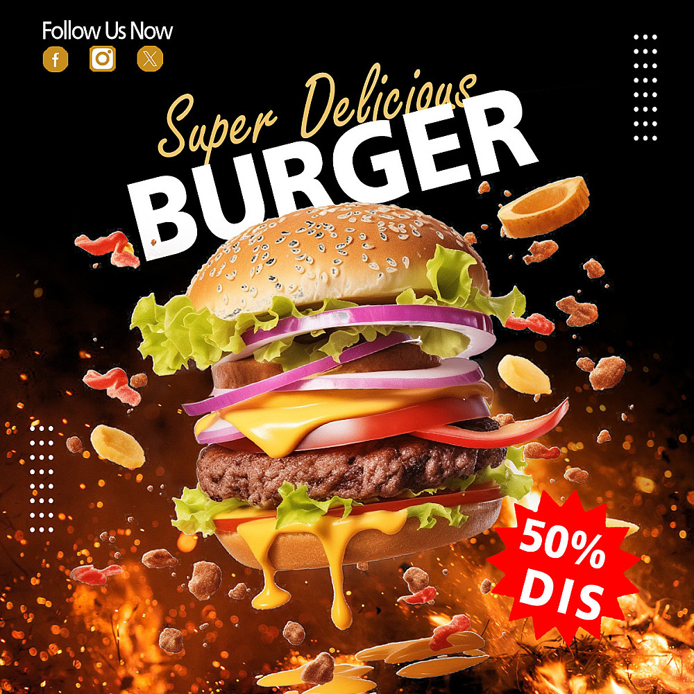 فن الدمج (Manipulation): استخدام احترافي لعناصر "البرجر" المتطايرة (Exploding View) لإظهار المكونات الطازجة وطبقات المنتج بشكل مغري.