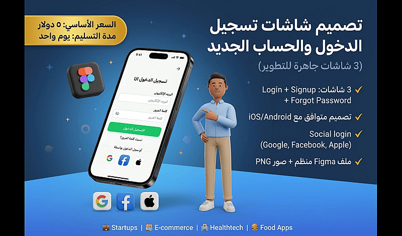 محتاج تصميم شاشات Login و Signup لتطبيقك؟