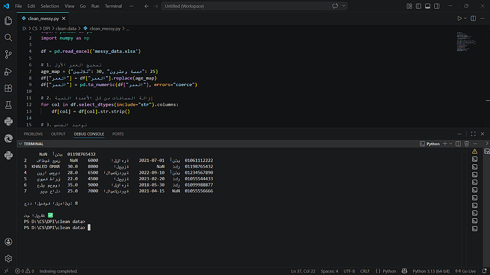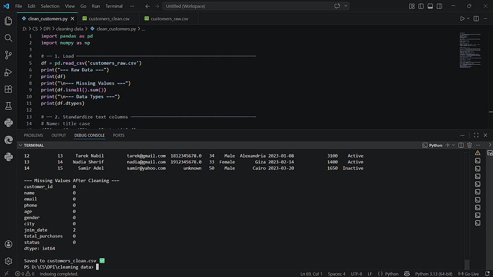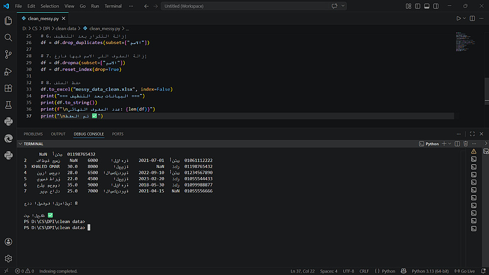 أساعدك في تنظيف ملفات Excel وCSV باستخدام Python Pandas بشكل احترافي.