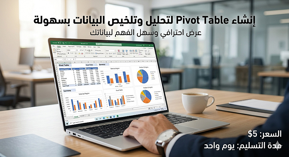 سأقوم بإنشاء Pivot Table لبياناتك في Excel لتلخيصها بشكل واضح وسهل، وتشمل:
