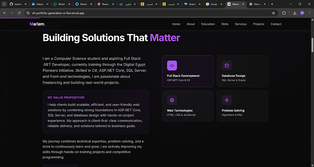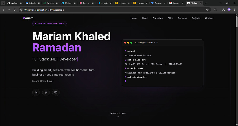 اهلاً بك! هل تريد عرض أعمالك ومهاراتك بشكل احترافي يجذب العملاء؟ سأقوم ببناء موقع معرض أعمال (Portfolio) عصري، سريع، ومتجاوب بالكامل مع جميع الشاشات. سواء كنت مصمماً، مبرمجاً، أو فريلانسر في أي مجال، سأصمم لك موقعاً يعكس هويتك المهنية ويبرز أفضل مشاريعك.