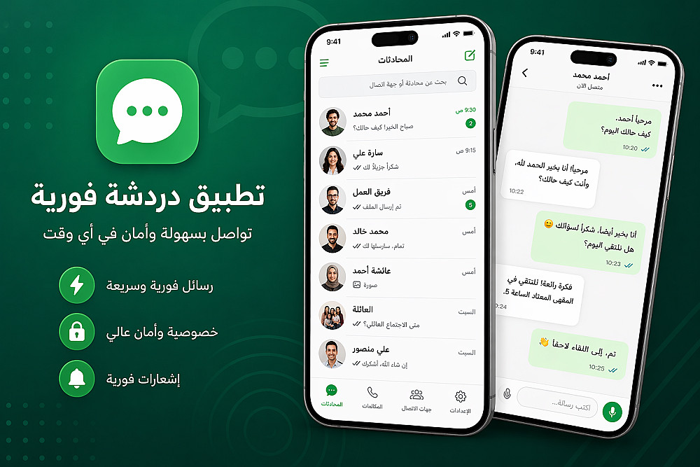 تطبيق دردشة شبيه بـ WhatsApp يتيح إرسال واستقبال الرسائل بشكل لحظي، مع إمكانية إرسال الصور والإشعارات الفورية.