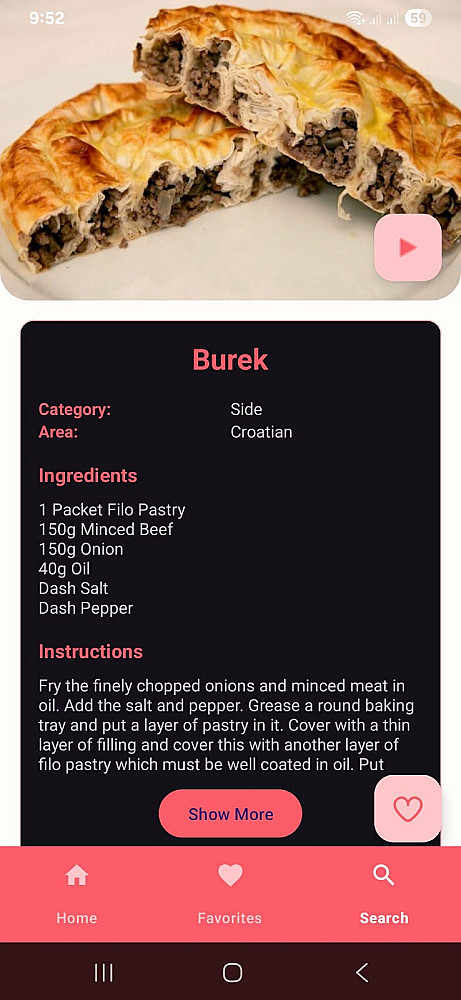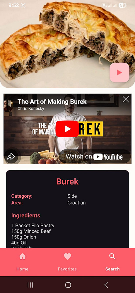 سأقوم بتطوير تطبيق وصفات مميز لأجهزة الأندرويد باستخدام لغة Kotlin. التطبيق سيمكن المستخدم من استعراض وصفات متنوعة مع المكونات والخطوات، البحث والتصفية بسهولة، حفظ الوصفات المفضلة. يتميز التطبيق بواجهة عصرية وسهلة الاستخدام مبنية على Material Design، مع أداء قوي وتقنيات حديثة في تطوير تطبيقات الأندرويد.
