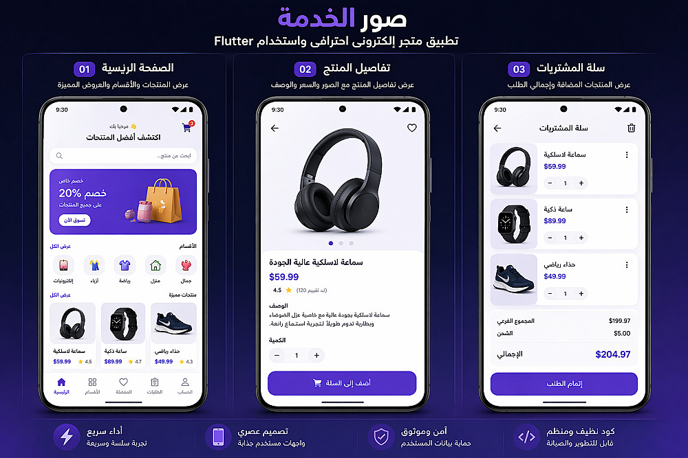 تصميم وتطوير تطبيق متجر إلكتروني احترافي باستخدام Flutter