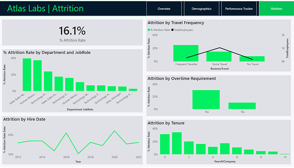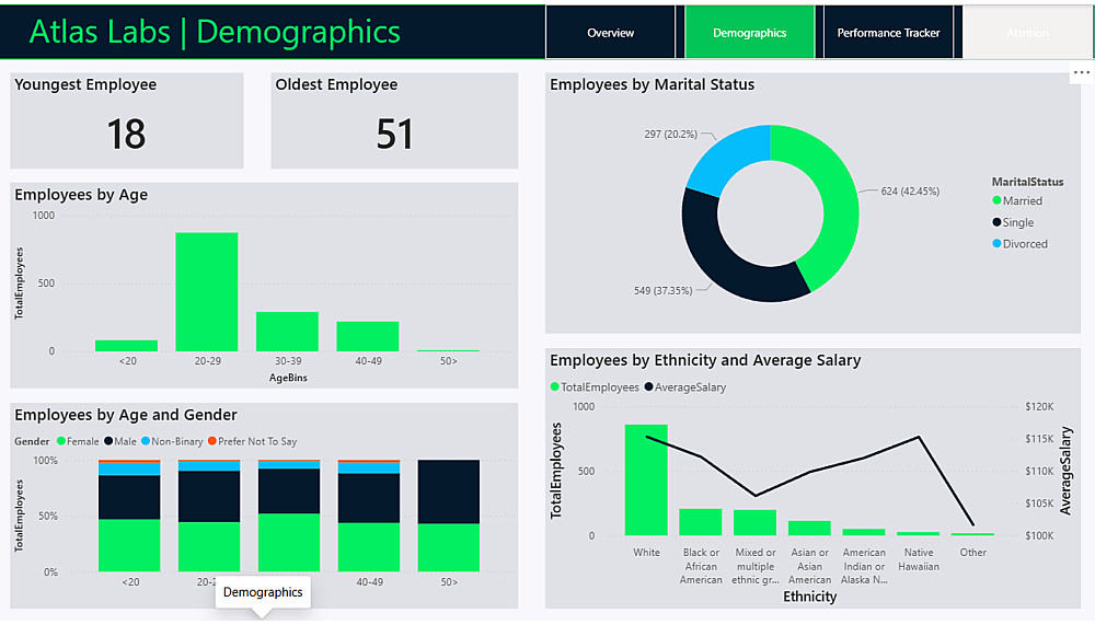 يهدف هذا المشروع إلى تقديم رؤية تحليلية شاملة للقوى العاملة في شركة "Atlas Labs". تم تصميم لوحة تحكم (Dashboard) تفاعلية ومؤتمتة بالكامل لمساعدة قسم الموارد البشرية والإدارة العليا في اتخاذ قرارات مبنية على البيانات فيما يخص التوظيف، استبقاء الموظفين (Retention)، ومتابعة الأداء.