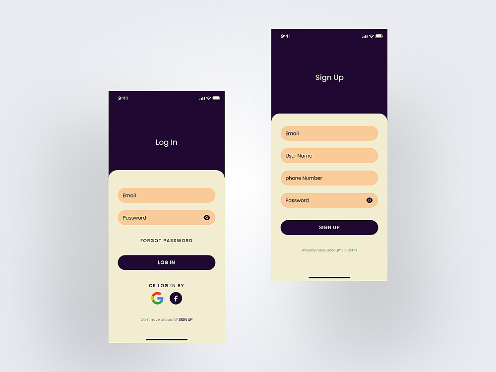 تصميم صفحتين Login و sign up بشكل احترافي.