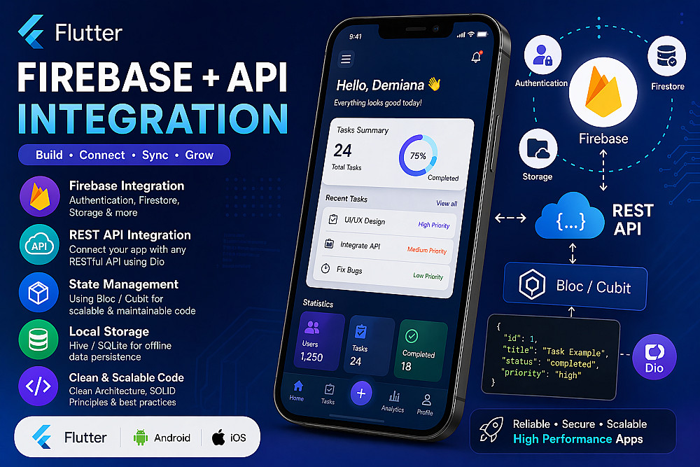 ربط تطبيق Flutter بـ Firebase و REST API باستخدام Bloc باحتراف