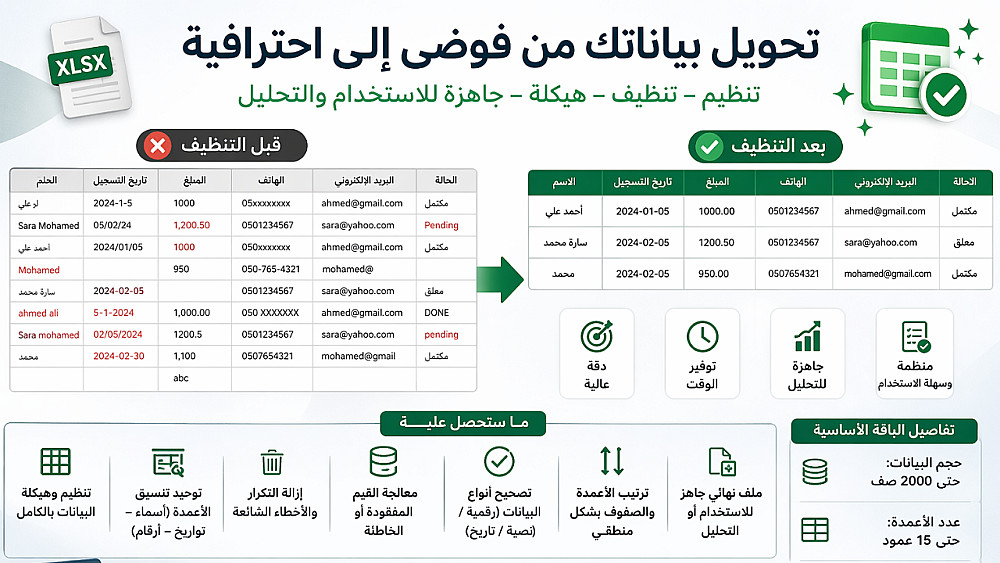 لديك بيانات غير مرتبة أو ملف Excel/CSV مليء بالأخطاء والتكرار ويصعب استخدامه؟