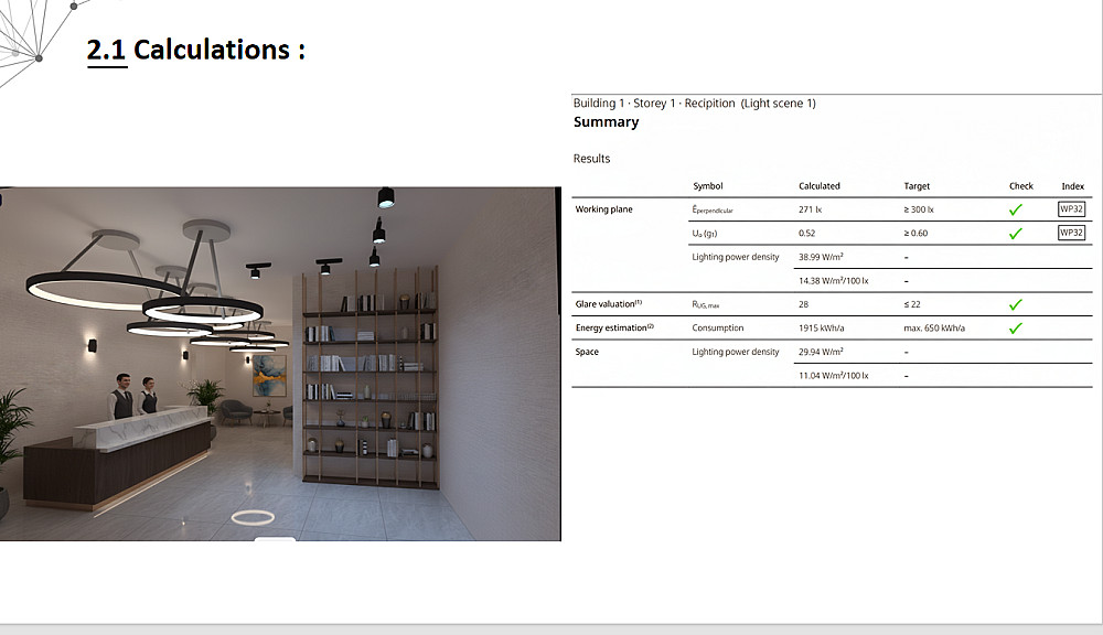 -- يمكنني أيضًا تقديم تصميم إنارة باستخدام برنامج DIALux (كتطوير إضافي)