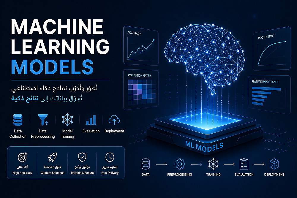 أقدّم خدمات احترافية في تصميم وتطوير نماذج Machine Learning لحل مشاكل البيانات وتحويلها إلى قرارات ذكية قابلة للتطبيق.