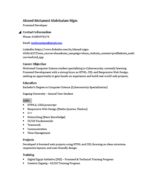 سأقوم بكتابة وتصميم سيرة ذاتية (CV) احترافية تعكس مهاراتك وخبراتك بشكل منظم وجذاب، مع التركيز على إبراز نقاط قوتك بطريقة تناسب سوق العمل.