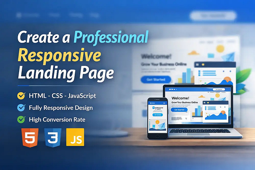صفحة هبوط landing Page Using Html, CSS, Bootstrap, JS