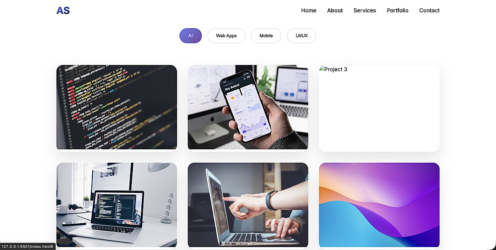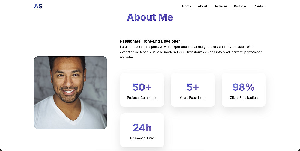يشمل الموقع جميع الأقسام الأساسية لأي Portfolio احترافي يشمل خمس صفحات ، مثل:
