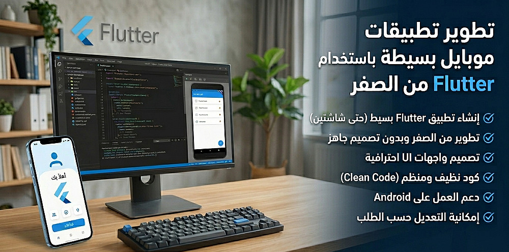 أقوم بتطوير تطبيقات موبايل بسيطة باستخدام Flutter من الصفر مع واجهات احترافية وكود منظم وقابل للتطوير.