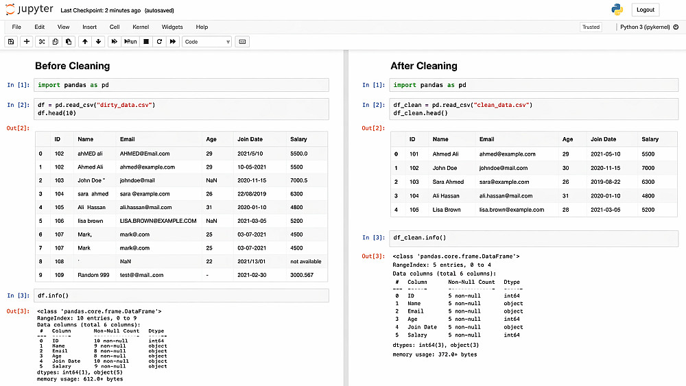 تنظيف ومعالجة البيانات وتجهيزها للتحليل أو تدريب نماذج الذكاء الاصطناعي