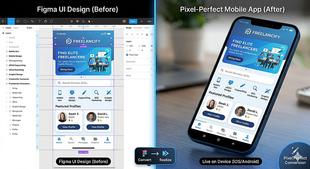 سأحول تصميم Figma أو Adobe XD إلى تطبيق Flutter احترافي ومتجاوب