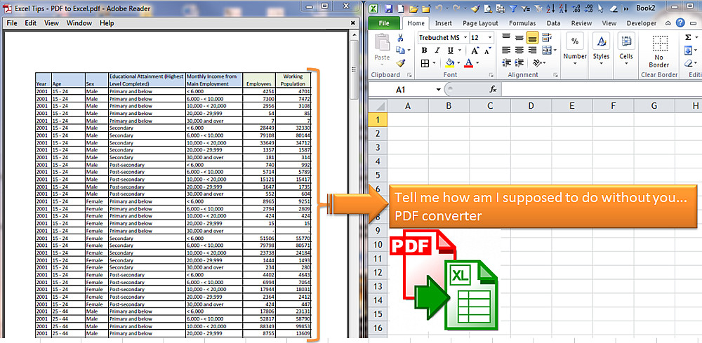 تحويل ملف حتى 10 صفحات PDF أو 500 صف Excel