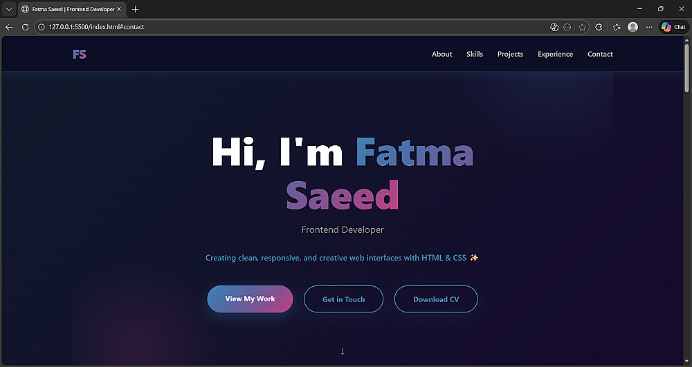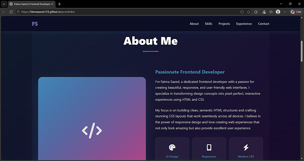 أقسام مخصصة: (نبذة عنك، المهارات التقنية، معرض المشاريع، وسائل التواصل).