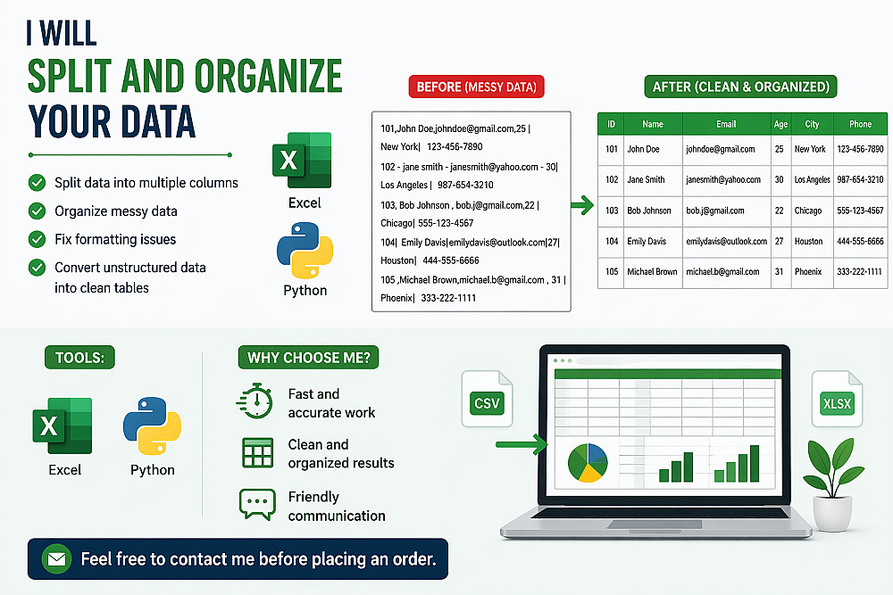سأقوم بتقسيم بياناتك وتنظيمها في أعمدة بشكل احترافي.