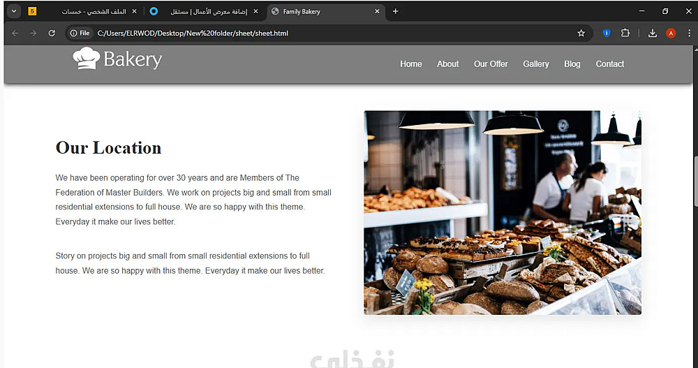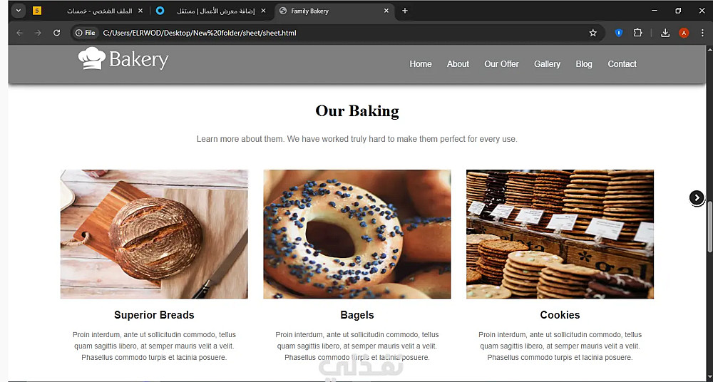 سأقوم بتصميم وتطوير موقع مخبوزات احترافي لعرض منتجاتك (خبز – حلويات – معجنات) بطريقة جذابة وسهلة الاستخدام.
