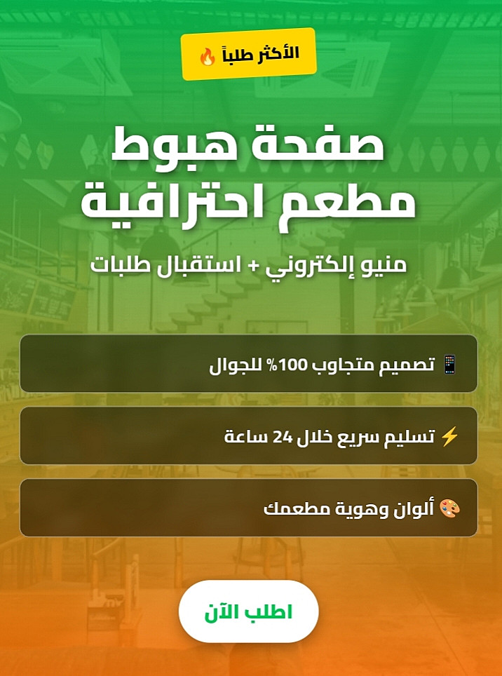 تصميم موقع تعريفي احترافي المطعم + منيو QR - تسليم 24 ساعة