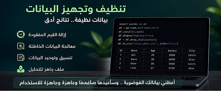 هل لديك بيانات غير جاهزة أو تحتوي على مشاكل وتريد استخدامها في التحليل أو Machine Learning؟