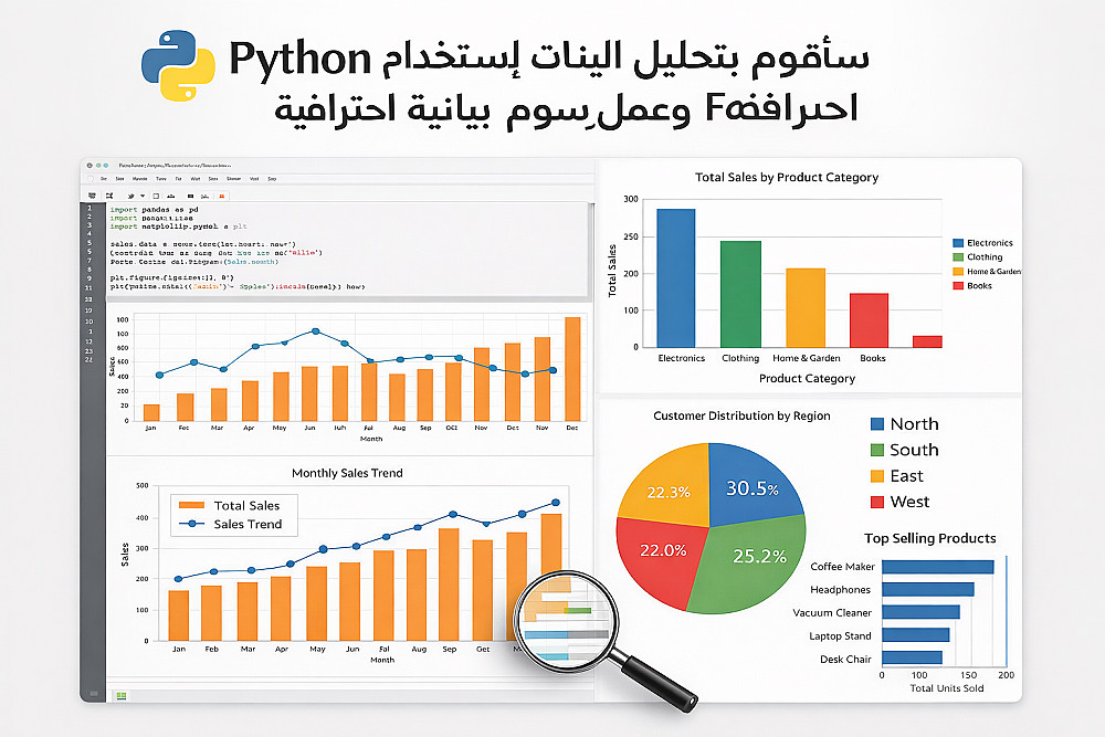 سأقوم بتحليل البيانات باستخدام Python و Pandas وعمل رسوم بيانية احترافية.